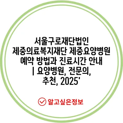 서울구로재단법인 제중의료복지재단 제중요양병원 예약 방법과 진료시간 안내 | 요양병원, 전문의, 추천, 2025′
