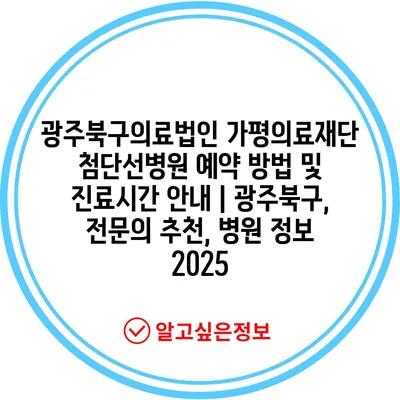 광주북구의료법인 가평의료재단 첨단선병원 예약 방법 및 진료시간 안내 | 광주북구, 전문의 추천, 병원 정보 2025