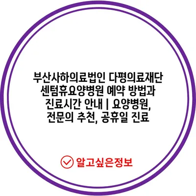 부산사하의료법인 다평의료재단 센텀휴요양병원 예약 방법과 진료시간 안내 | 요양병원, 전문의 추천, 공휴일 진료