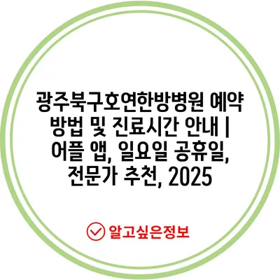 광주북구호연한방병원 예약 방법 및 진료시간 안내 | 어플 앱, 일요일 공휴일, 전문가 추천, 2025