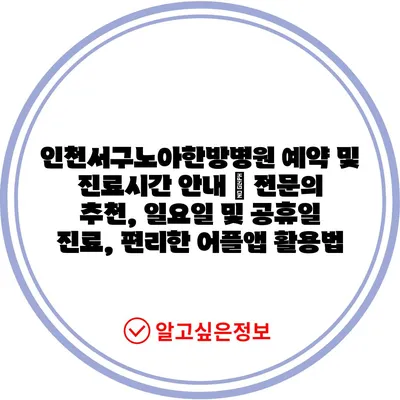 인천서구노아한방병원 예약 및 진료시간 안내 | 전문의 추천, 일요일 및 공휴일 진료, 편리한 어플앱 활용법