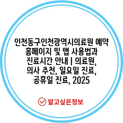 인천동구인천광역시의료원 예약 홈페이지 및 앱 사용법과 진료시간 안내 | 의료원, 의사 추천, 일요일 진료, 공휴일 진료, 2025