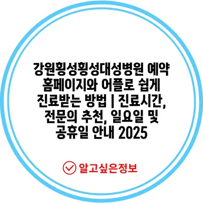 강원횡성횡성대성병원 예약 홈페이지와 어플로 쉽게 진료받는 방법 | 진료시간, 전문의 추천, 일요일 및 공휴일 안내 2025