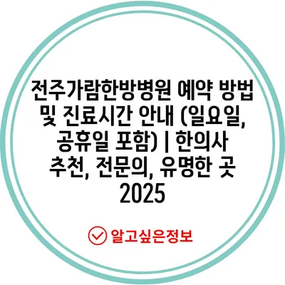 전주가람한방병원 예약 방법 및 진료시간 안내 (일요일, 공휴일 포함) | 한의사 추천, 전문의, 유명한 곳 2025