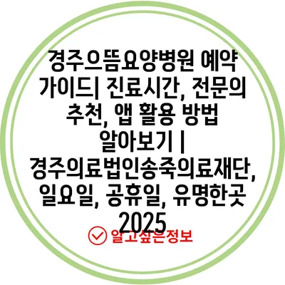 경주으뜸요양병원 예약 가이드| 진료시간, 전문의 추천, 앱 활용 방법 알아보기 | 경주의료법인송죽의료재단, 일요일, 공휴일, 유명한곳 2025