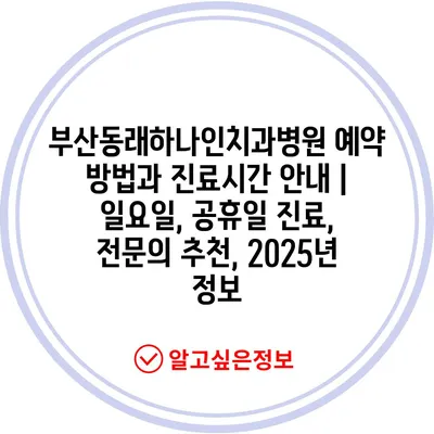부산동래하나인치과병원 예약 방법과 진료시간 안내 | 일요일, 공휴일 진료, 전문의 추천, 2025년 정보