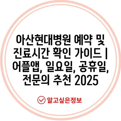 아산현대병원 예약 및 진료시간 확인 가이드 | 어플앱, 일요일, 공휴일, 전문의 추천 2025