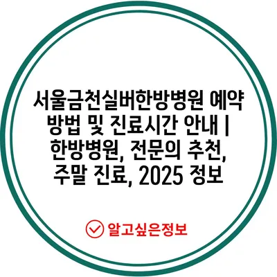 서울금천실버한방병원 예약 방법 및 진료시간 안내 | 한방병원, 전문의 추천, 주말 진료, 2025 정보