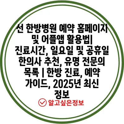 선 한방병원 예약 홈페이지 및 어플앱 활용법| 진료시간, 일요일 및 공휴일 한의사 추천, 유명 전문의 목록 | 한방 진료, 예약 가이드, 2025년 최신 정보