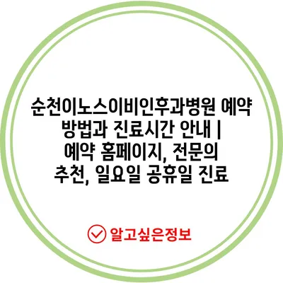 순천이노스이비인후과병원 예약 방법과 진료시간 안내 | 예약 홈페이지, 전문의 추천, 일요일 공휴일 진료
