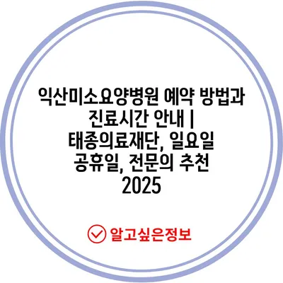 익산미소요양병원 예약 방법과 진료시간 안내 | 태종의료재단, 일요일 공휴일, 전문의 추천 2025