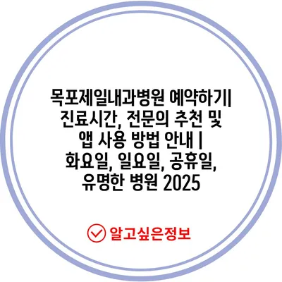 목포제일내과병원 예약하기| 진료시간, 전문의 추천 및 앱 사용 방법 안내 | 화요일, 일요일, 공휴일, 유명한 병원 2025