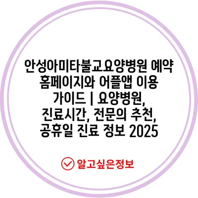 안성아미타불교요양병원 예약 홈페이지와 어플앱 이용 가이드 | 요양병원, 진료시간, 전문의 추천, 공휴일 진료 정보 2025