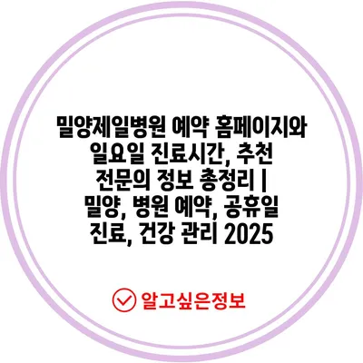 밀양제일병원 예약 홈페이지와 일요일 진료시간, 추천 전문의 정보 총정리 | 밀양, 병원 예약, 공휴일 진료, 건강 관리 2025