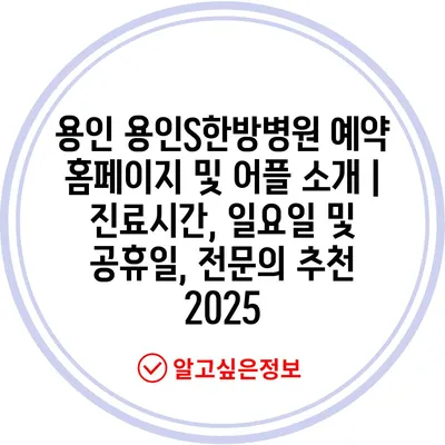 용인 용인S한방병원 예약 홈페이지 및 어플 소개 | 진료시간, 일요일 및 공휴일, 전문의 추천 2025