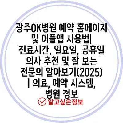 광주OK병원 예약 홈페이지 및 어플앱 사용법| 진료시간, 일요일, 공휴일 의사 추천 및 잘 보는 전문의 알아보기(2025) | 의료, 예약 시스템, 병원 정보