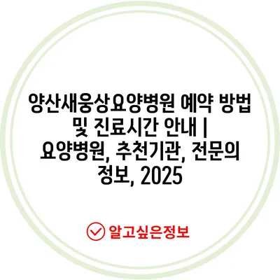양산새웅상요양병원 예약 방법 및 진료시간 안내 | 요양병원, 추천기관, 전문의 정보, 2025