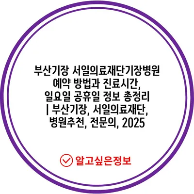 부산기장 서일의료재단기장병원 예약 방법과 진료시간, 일요일 공휴일 정보 총정리 | 부산기장, 서일의료재단, 병원추천, 전문의, 2025