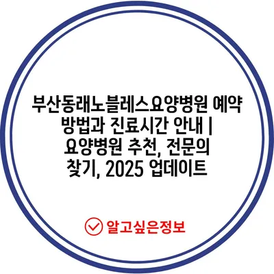 부산동래노블레스요양병원 예약 방법과 진료시간 안내 | 요양병원 추천, 전문의 찾기, 2025 업데이트