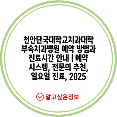 천안단국대학교치과대학 부속치과병원 예약 방법과 진료시간 안내 | 예약 시스템, 전문의 추천, 일요일 진료, 2025