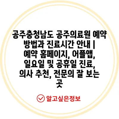 공주충청남도 공주의료원 예약 방법과 진료시간 안내 | 예약 홈페이지, 어플앱, 일요일 및 공휴일 진료, 의사 추천, 전문의 잘 보는 곳