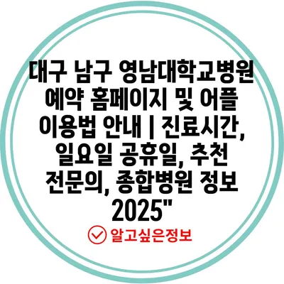 대구 남구 영남대학교병원 예약 홈페이지 및 어플 이용법 안내 | 진료시간, 일요일 공휴일, 추천 전문의, 종합병원 정보 2025″