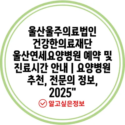 울산울주의료법인 건강한의료재단 울산연세요양병원 예약 및 진료시간 안내 | 요양병원 추천, 전문의 정보, 2025″