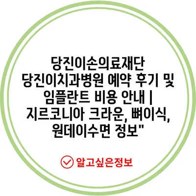 당진이손의료재단 당진이치과병원 예약 후기 및 임플란트 비용 안내 | 지르코니아 크라운, 뼈이식, 원데이수면 정보”