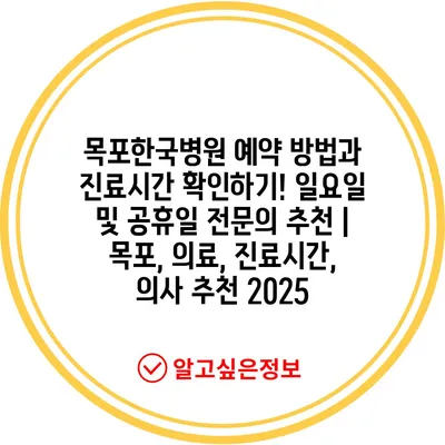 목포한국병원 예약 방법과 진료시간 확인하기! 일요일 및 공휴일 전문의 추천 | 목포, 의료, 진료시간, 의사 추천 2025