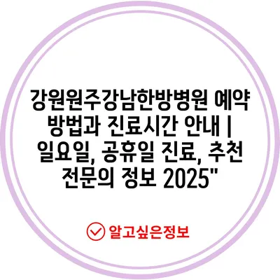 강원원주강남한방병원 예약 방법과 진료시간 안내 | 일요일, 공휴일 진료, 추천 전문의 정보 2025″