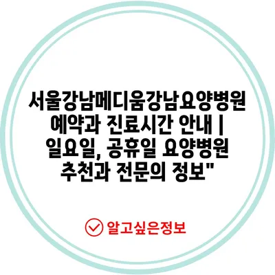 서울강남메디움강남요양병원 예약과 진료시간 안내 | 일요일, 공휴일 요양병원 추천과 전문의 정보”