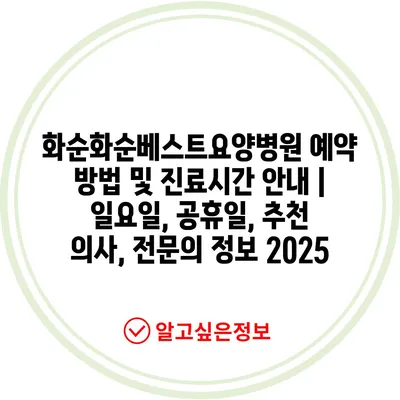 화순화순베스트요양병원 예약 방법 및 진료시간 안내 | 일요일, 공휴일, 추천 의사, 전문의 정보 2025