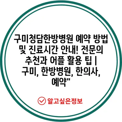 구미청담한방병원 예약 방법 및 진료시간 안내! 전문의 추천과 어플 활용 팁 | 구미, 한방병원, 한의사, 예약”