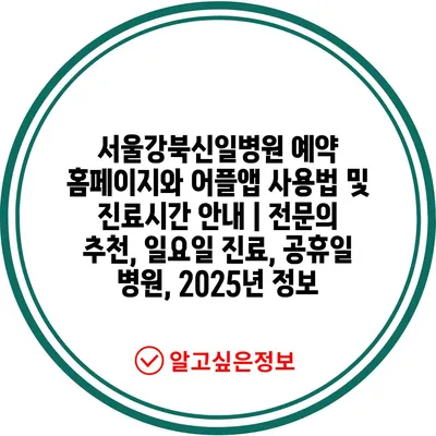 서울강북신일병원 예약 홈페이지와 어플앱 사용법 및 진료시간 안내 | 전문의 추천, 일요일 진료, 공휴일 병원, 2025년 정보