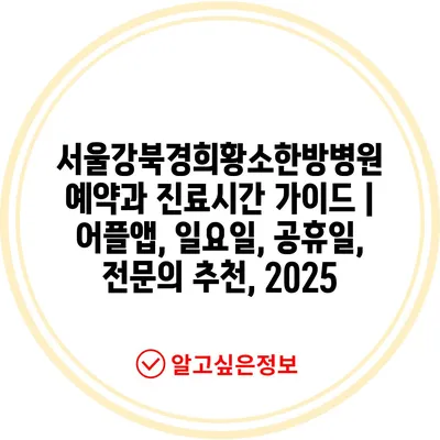 서울강북경희황소한방병원 예약과 진료시간 가이드 | 어플앱, 일요일, 공휴일, 전문의 추천, 2025