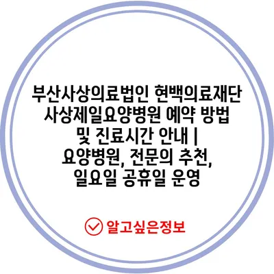 부산사상의료법인 현백의료재단 사상제일요양병원 예약 방법 및 진료시간 안내 | 요양병원, 전문의 추천, 일요일 공휴일 운영