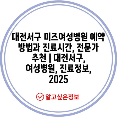 대전서구 미즈여성병원 예약 방법과 진료시간, 전문가 추천 | 대전서구, 여성병원, 진료정보, 2025