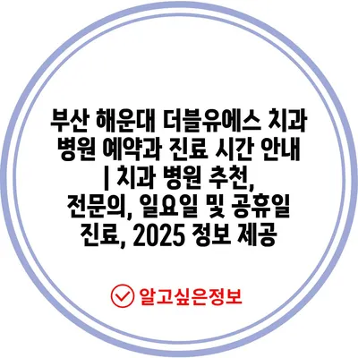부산 해운대 더블유에스 치과 병원 예약과 진료 시간 안내 | 치과 병원 추천, 전문의, 일요일 및 공휴일 진료, 2025 정보 제공