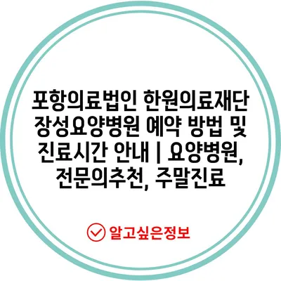 포항의료법인 한원의료재단 장성요양병원 예약 방법 및 진료시간 안내 | 요양병원, 전문의추천, 주말진료