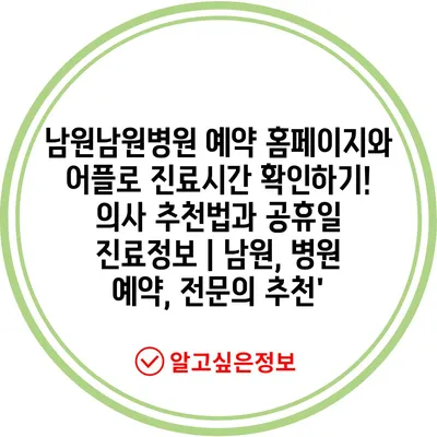 남원남원병원 예약 홈페이지와 어플로 진료시간 확인하기! 의사 추천법과 공휴일 진료정보 | 남원, 병원 예약, 전문의 추천’
