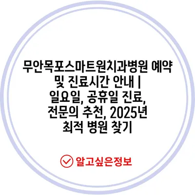 무안목포스마트원치과병원 예약 및 진료시간 안내 | 일요일, 공휴일 진료, 전문의 추천, 2025년 최적 병원 찾기