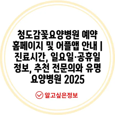 청도감꽃요양병원 예약 홈페이지 및 어플앱 안내 | 진료시간, 일요일·공휴일 정보, 추천 전문의와 유명 요양병원 2025
