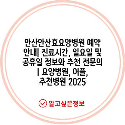안산안산효요양병원 예약 안내| 진료시간, 일요일 및 공휴일 정보와 추천 전문의 | 요양병원, 어플, 추천병원 2025