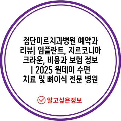 첨단미르치과병원 예약과 리뷰| 임플란트, 지르코니아 크라운, 비용과 보험 정보 | 2025 원데이 수면 치료 및 뼈이식 전문 병원