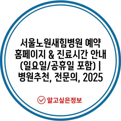 서울노원새힘병원 예약 홈페이지 & 진료시간 안내 (일요일/공휴일 포함) | 병원추천, 전문의, 2025