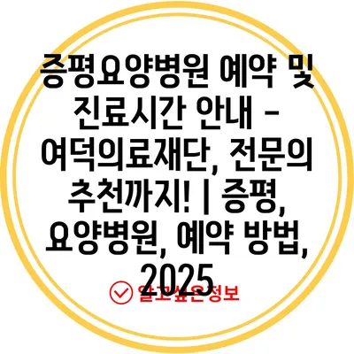 증평요양병원 예약 및 진료시간 안내 – 여덕의료재단, 전문의 추천까지! | 증평, 요양병원, 예약 방법, 2025