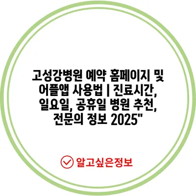 고성강병원 예약 홈페이지 및 어플앱 사용법 | 진료시간, 일요일, 공휴일 병원 추천, 전문의 정보 2025″