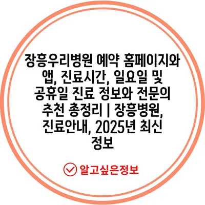 장흥우리병원 예약 홈페이지와 앱, 진료시간, 일요일 및 공휴일 진료 정보와 전문의 추천 총정리 | 장흥병원, 진료안내, 2025년 최신 정보