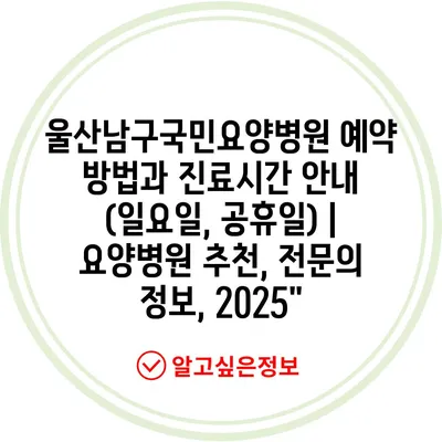 울산남구국민요양병원 예약 방법과 진료시간 안내 (일요일, 공휴일) | 요양병원 추천, 전문의 정보, 2025″