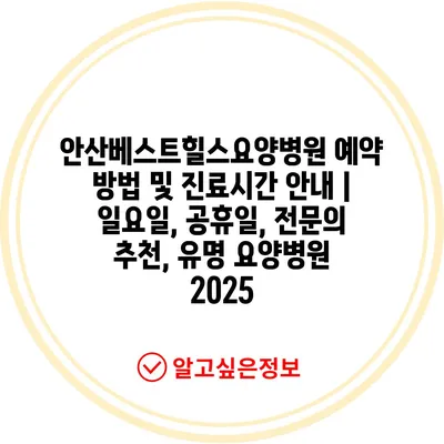 안산베스트힐스요양병원 예약 방법 및 진료시간 안내 | 일요일, 공휴일, 전문의 추천, 유명 요양병원 2025